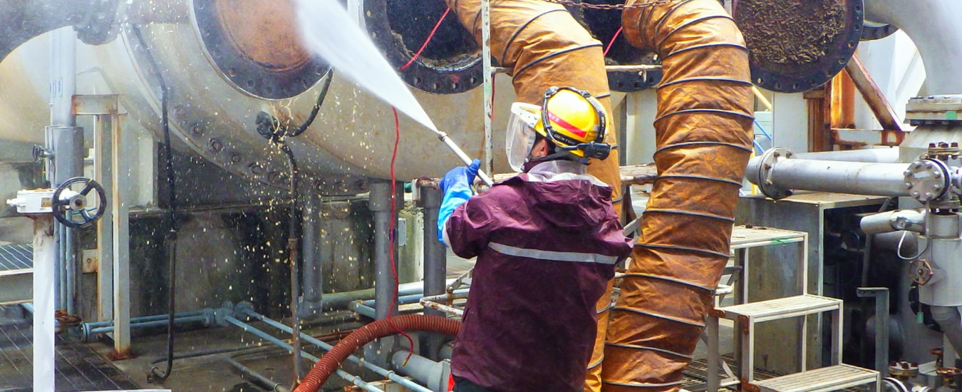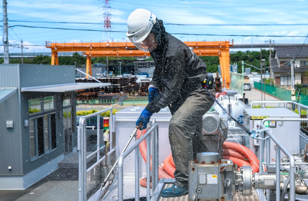 全英は法人工場内各種プラント・各種工場配管のクリーニングと補修工事ならびに法人向け産業廃棄物処理を担い、環境維持に貢献。