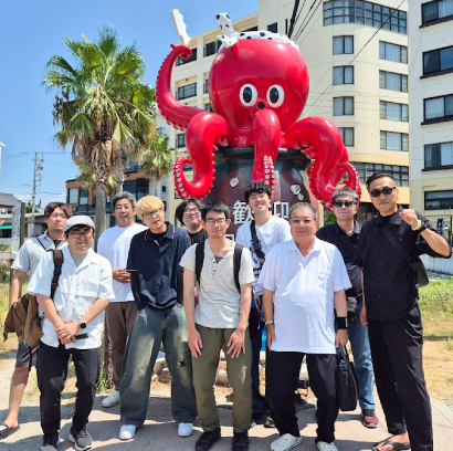 旅の始まりは、タコで有名な日間賀島! 船に乗って島へ渡ると、まず出迎えてくれたのが、巨大なタコのモニュメント。みんなで写真を撮りながら、テンションも一気に上がりました。