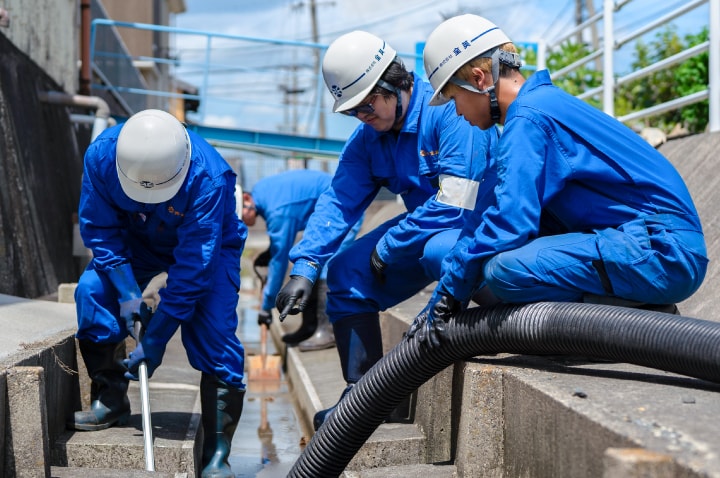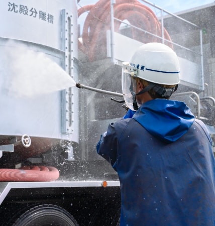 発電所のボイラ、タービン、熱交換器や配管などに蓄積した汚れを高圧水で洗浄することで、発電所の安定稼働に貢献します。循環水管ロボットでの洗浄は身体に負担をかけることなく洗浄作業を行うことができます。排水脱水から収集運搬まで一括処理を担っています。