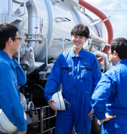 現在私は、プラント設備の機械洗浄やメンテナンスを担当しています。その際に発生する産業廃棄物の収集と運搬も私の業務です。一連の作業を通じて業務全体に関わることができ、非常にやりがいを感じています。また、大型免許を持っていたことが、とても役立っています。